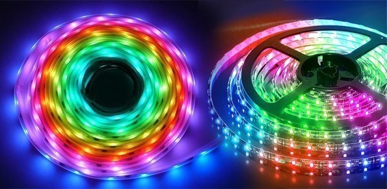 Светодиодная лента управляется при помощи RGB контроллера подключенного к ленте. Дистанционное управление цветом, вспышками и яркостью при помощи пульта Д/У.